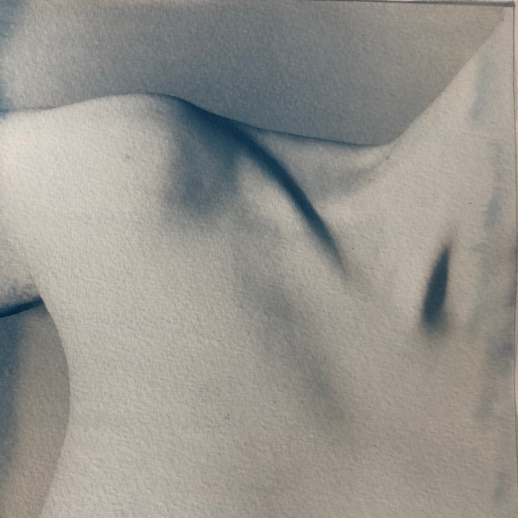 The intimacy archive is the artists documentation of a period of intense intimacy between herself and her partner through England’s second lockdown, during the Covid pandemic. A series of daily cyanotype portraits explore the comfort and claustrophobia of two people separated from other connections, finding beauty in the smallest detail, creating fantasy worlds and turning bodies into sculptures. Their bodies; together and alone. Each print was made only once, accepting faults and imperfect exposure as part of the process. There was both tenderness and strength in the exploration.