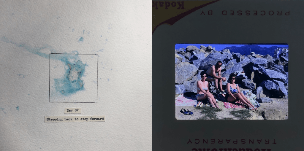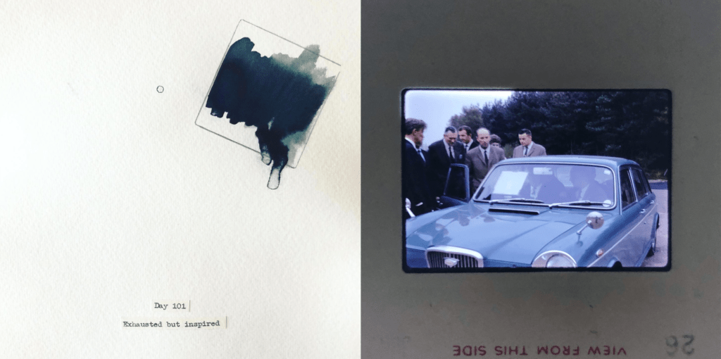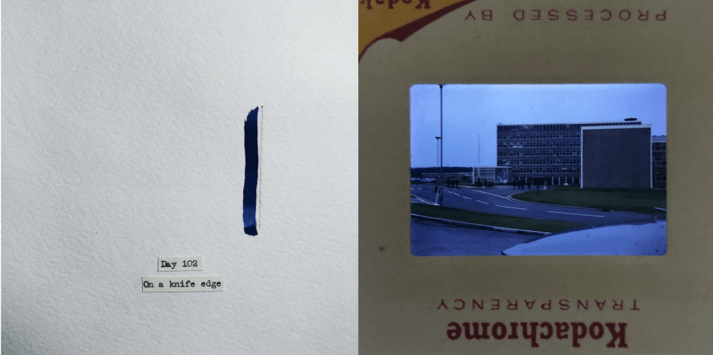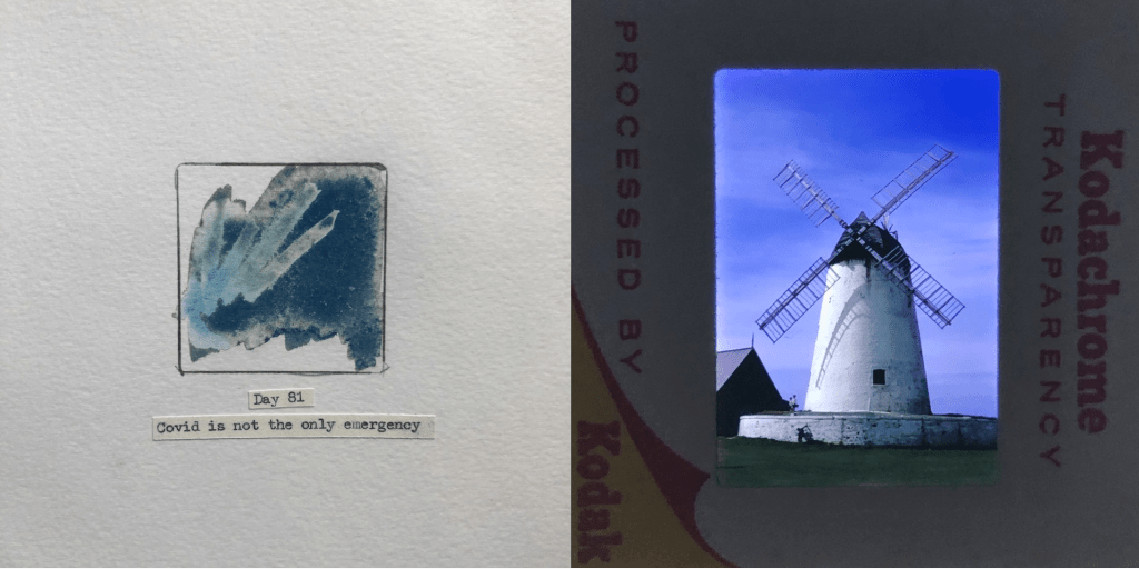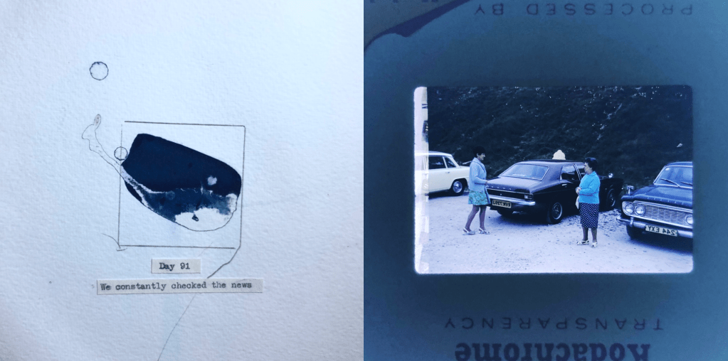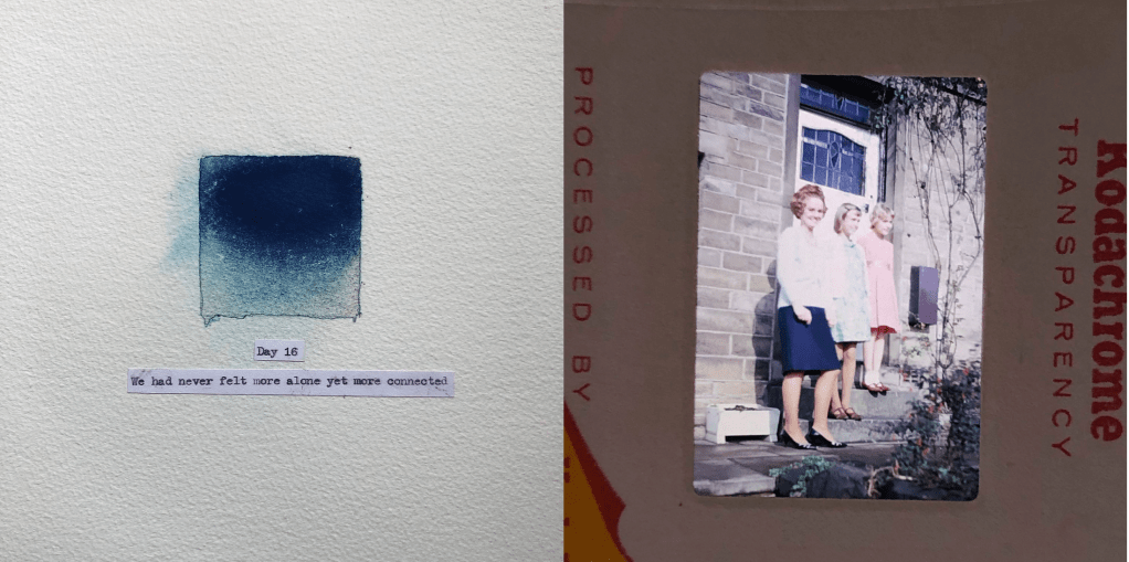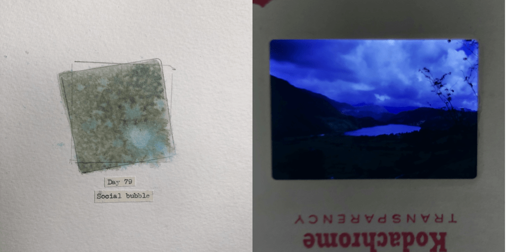 Isolation Archive is a response to the global pandemic and the artists personal experience of lockdown, whilst considering its wider political implications. In what way is this experience universal and in what way is it dictated by our class, race or position of power? The archive is a daily documentation of 12 minutes of light using cyanotype emulsion, throughout the U.Ks first lockdown. A 35mm slide sized square is painted on A4 watercolour paper and exposed to the sun, working collaboratively with the weather conditions each day. The work directly encapsulates this historic moment in time, through alchemy with light and pigment. Each piece is accompanied by small pieces of text, ranging from micro-observations of the personal, to considerations of the collective experience, lines from government statements and abstract reactions to particular political events. Through the series the boundaries of the square are pushed upon more and more as time passes, reflective of the artists own feelings of containment. Each piece is paired with the documentation of a slide, from one families collection through the generations. Life is lived vicariously through the collection, whilst reflecting on the chronic nostalgia for time before the pandemic.